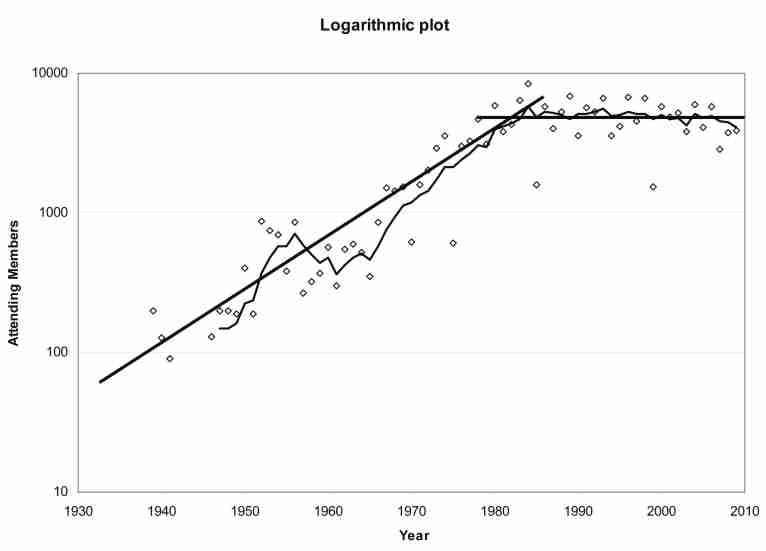 You can find the historical list of Worldcon attendances online. If you take a look at the numbers, one thing you will notice is that different parts of the world have very different attendance levels. Consequently you can draw some very misleading lines between pairs of points. If I looked at the decade from 2000 (Chicago, 5,794) to 2009 (Montréal, 3,9121 ) I could argue that Worldcon has dropped by a third in size. But if I looked at 1999 (Melbourne, 1,548) to 2008 (Denver, 3,752) then miraculously the convention has more than doubled in size.