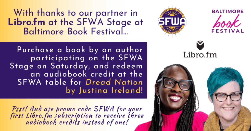 It’s going to be a great weekend on the East Coast. Make sure you check out the full lineup of SFWA events at the Baltimore Book Festival.