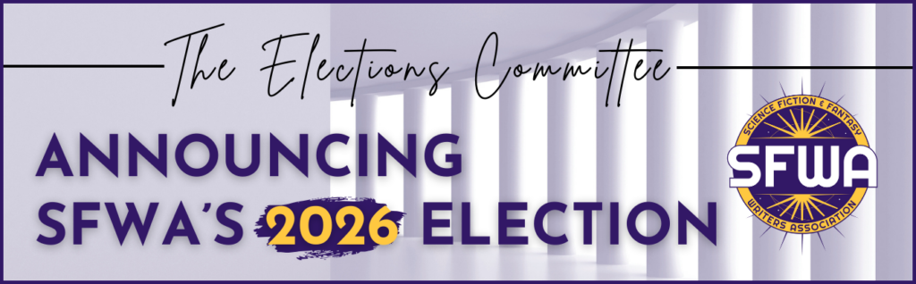 Would you like to run for the SFWA board? The next step is to email the Elections Committee at elections@sfwa.org before February 10, 2026 and state your interest. They will confirm your eligibility and can answer any further questions.