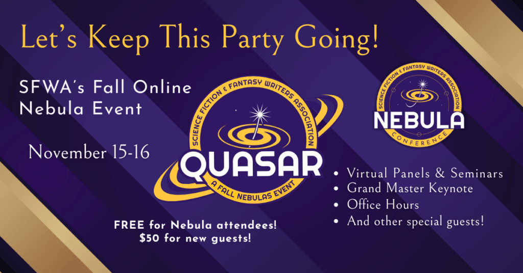 JOIN US FOR QUASAR! SFWA Celebrates Professional Excellence with Fall Online Nebula Event FOR IMMEDIATE RELEASE SAN FRANCISCO, CA –