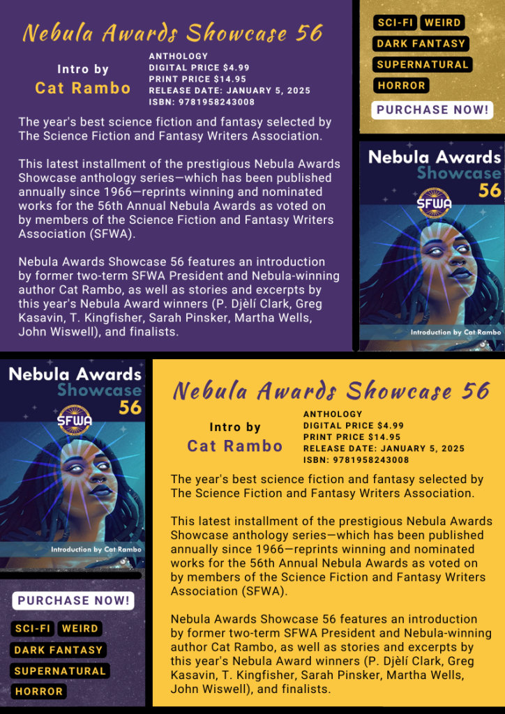 SFWA is delighted to be growing its advocacy power to include other works of SFF: videogames, table-top board games, comic series, and other visual arts. Check this space soon for word about an upcoming Quarterly NRN, specially designed to feature your latest releases in more dynamic mediums.