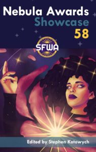 We’re looking for a full color, wrap-around piece, with non-exclusive usage rights for all editions of the Nebula Showcase volume, as well as the right to use the artwork in marketing and promotional efforts. We encourage pieces that are inspired by the work of our Grandmaster, who is N. K. Jemisin in 2026. Examples from some recent Showcases are below.