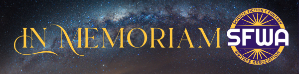 SFWA’s In Memoriam marks the loss of writers and other science fiction and fantasy creators by celebrating their literary legacies and their contributions to the publishing community. The person whose loss we are marking does not have to be a SFWA member. It is enough that they contributed to the world of SFF and leave behind people who wish to honor their life and work. Please contact publications@sfwa.org if you wish for us to add an entry for a recently lost creator to the list.